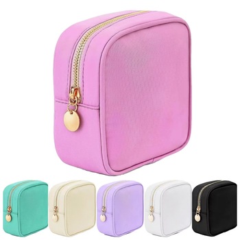 Hỗ Trợ Tùy Chỉnh Logo Mini Vuông Nylon Pouch Với Dây Kéo Nylon Không Thấm Nước Vuông Trang Điểm Lưu Trữ Túi Cho Người Phụ Nữ Cô Gái